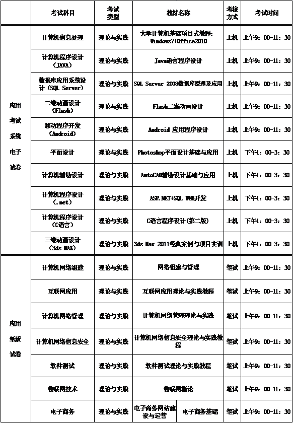 2016年下半年全国信息技术水平考试开考科目及考试时间