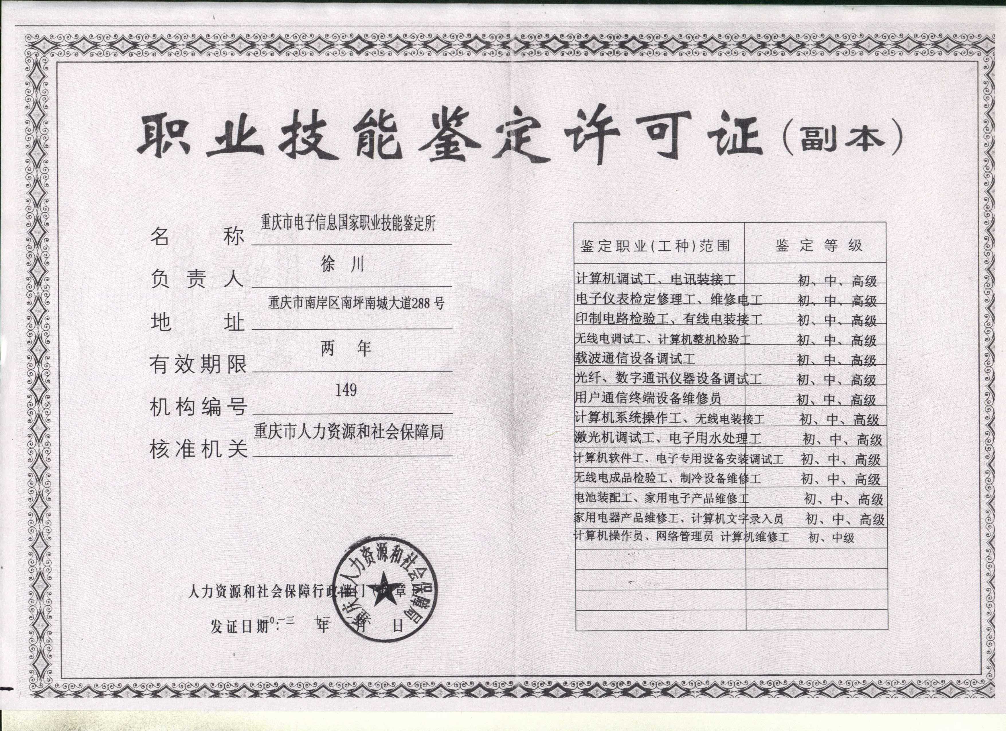 鉴定所许可证