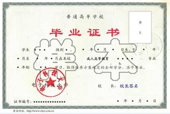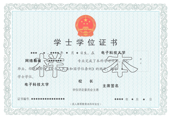 凡我校招收的成教业余、函授教育的学生,完成培养方案规定的教学、实践环节,经考核合格者,按教育部有关规定发给国家承认学历的电子科技大学成人高等教育毕业证书(附样本),符合学位授予条件的学生可颁发成人高等教育学士学位证书。