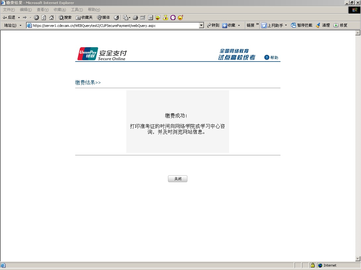 如果缴费失败,请关闭该页面返回到网上支付截面,重新缴费。